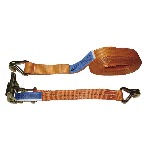 Zurrgurt, zweiteilig mit Standard-Druckratsche, beidseitig mit Spitzhaken. STF 280 daN.